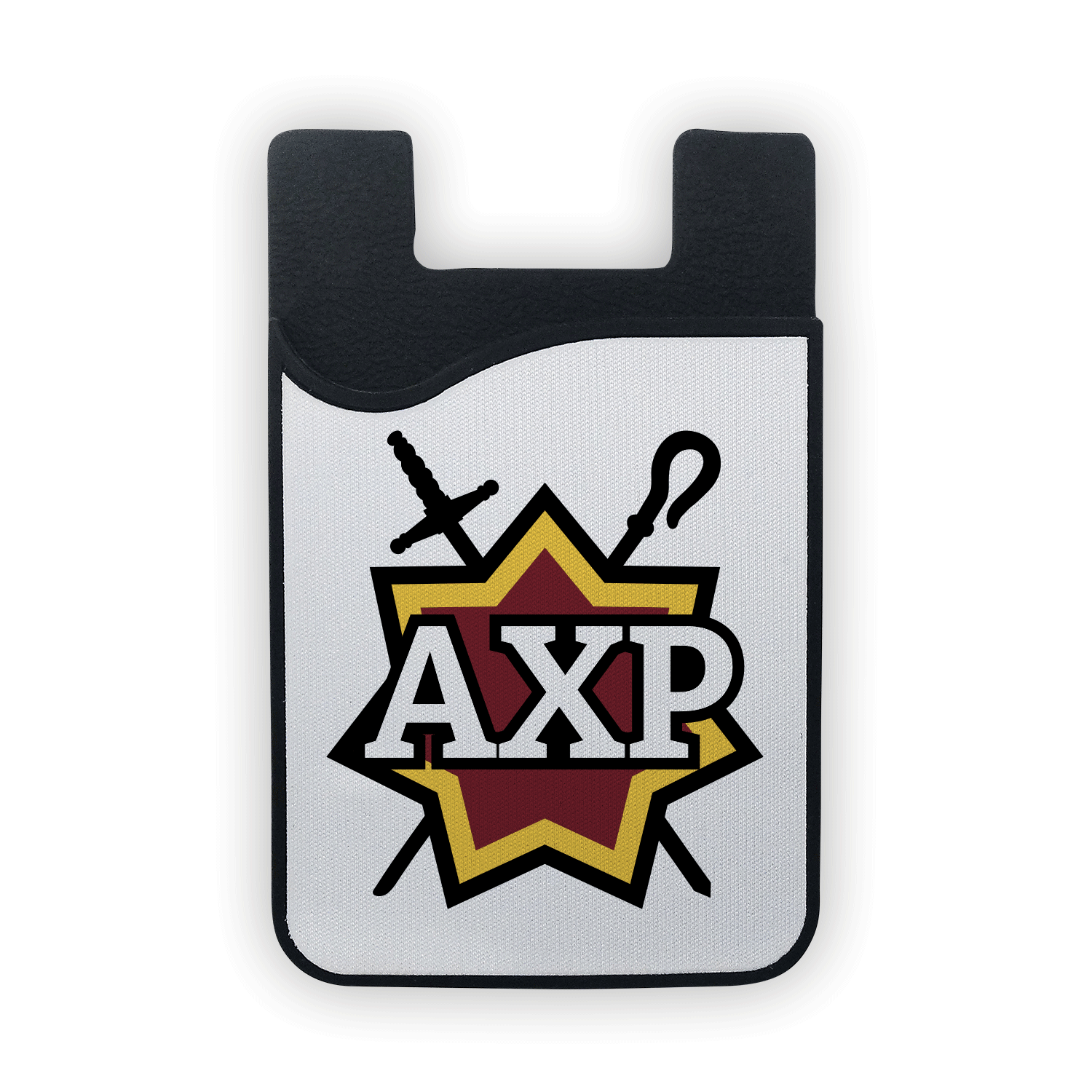 Specs: Black Silicone Phone Wallet. Size: 3-3/4″ x 2-1/4″ x 1/8″. Features: Fits Credit Cards, IDs, or cash. Design is printed on removable microfiber screen cleaner.