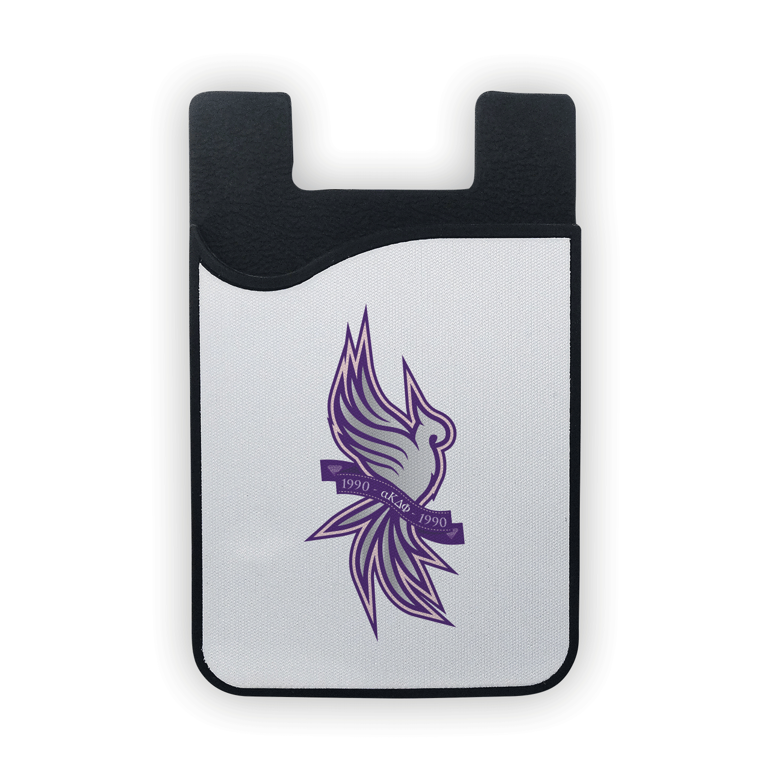 Specs: Black Silicone Phone Wallet. Size: 3-3/4″ x 2-1/4″ x 1/8″. Features: Fits Credit Cards, IDs, or cash. Design is printed on removable microfiber screen cleaner.