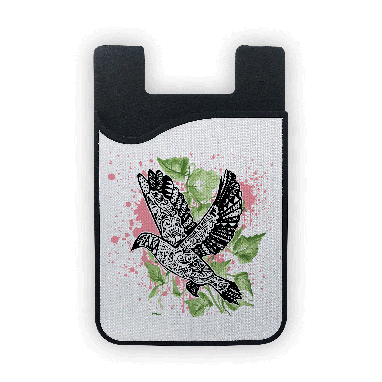 Specs: Black Silicone Phone Wallet. Size: 3-3/4″ x 2-1/4″ x 1/8″. Features: Fits Credit Cards, IDs, or cash. Design is printed on removable microfiber screen cleaner.