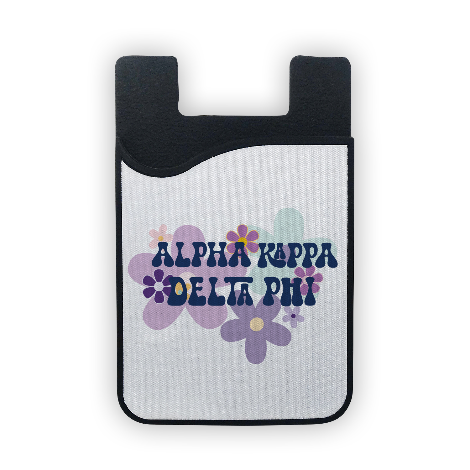 Specs: Black Silicone Phone Wallet. Size: 3-3/4″ x 2-1/4″ x 1/8″. Features: Fits Credit Cards, IDs, or cash. Design is printed on removable microfiber screen cleaner.