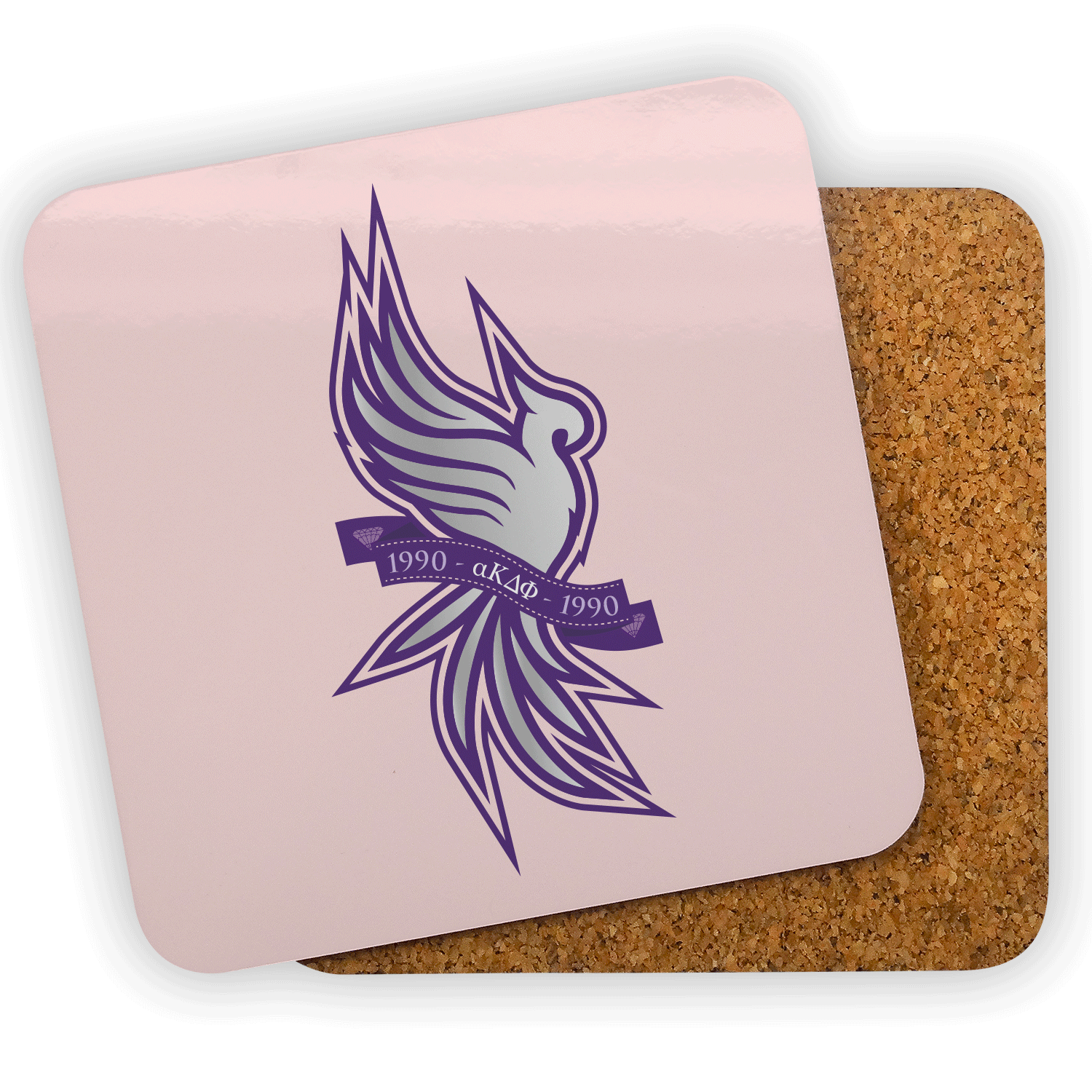 Specs: 3.75” square coaster with rounded corners, cork backing Features: Gloss background Quantity: Comes in packs of 4