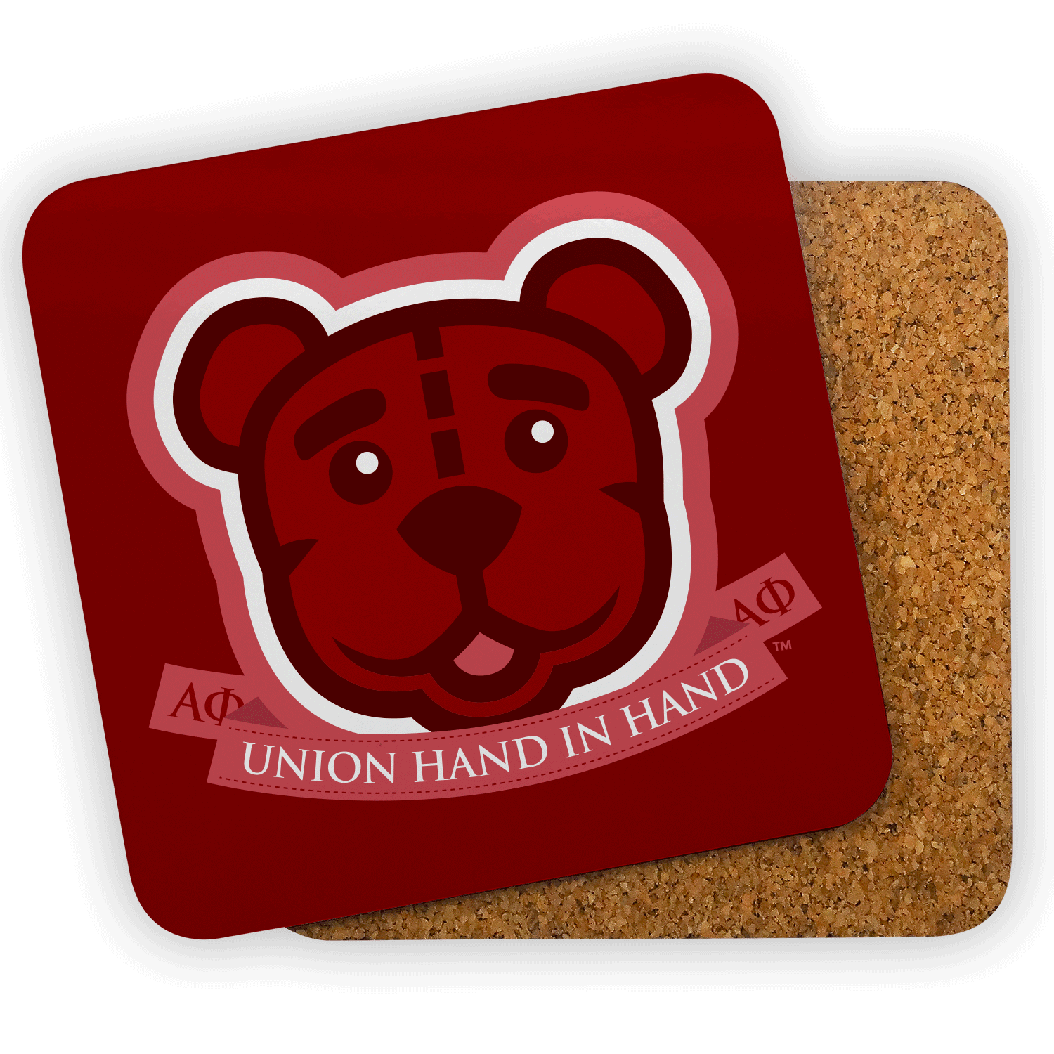 Specs: 3.75” square coaster with rounded corners, cork backing