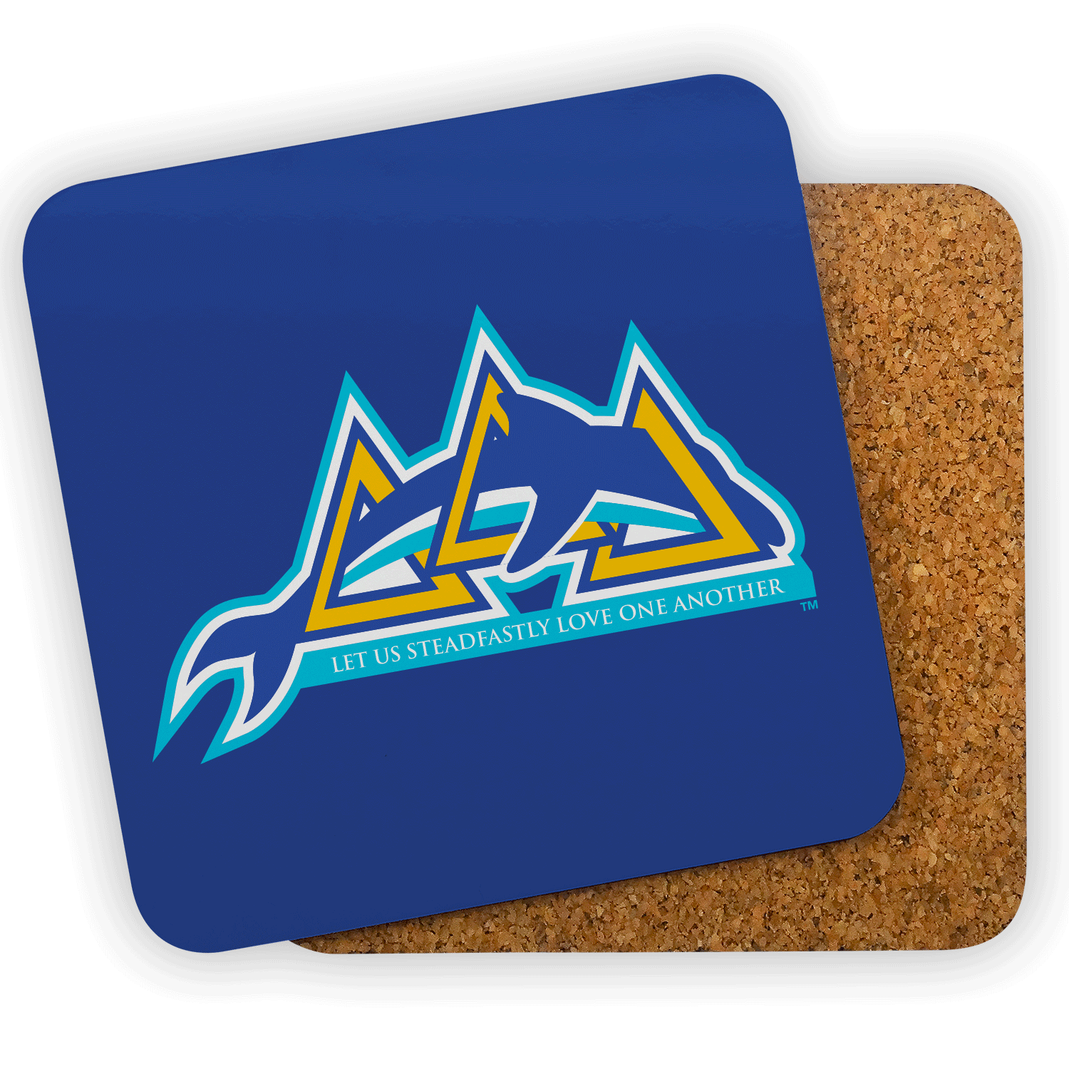 Specs: 3.75” square coaster with rounded corners, cork backing