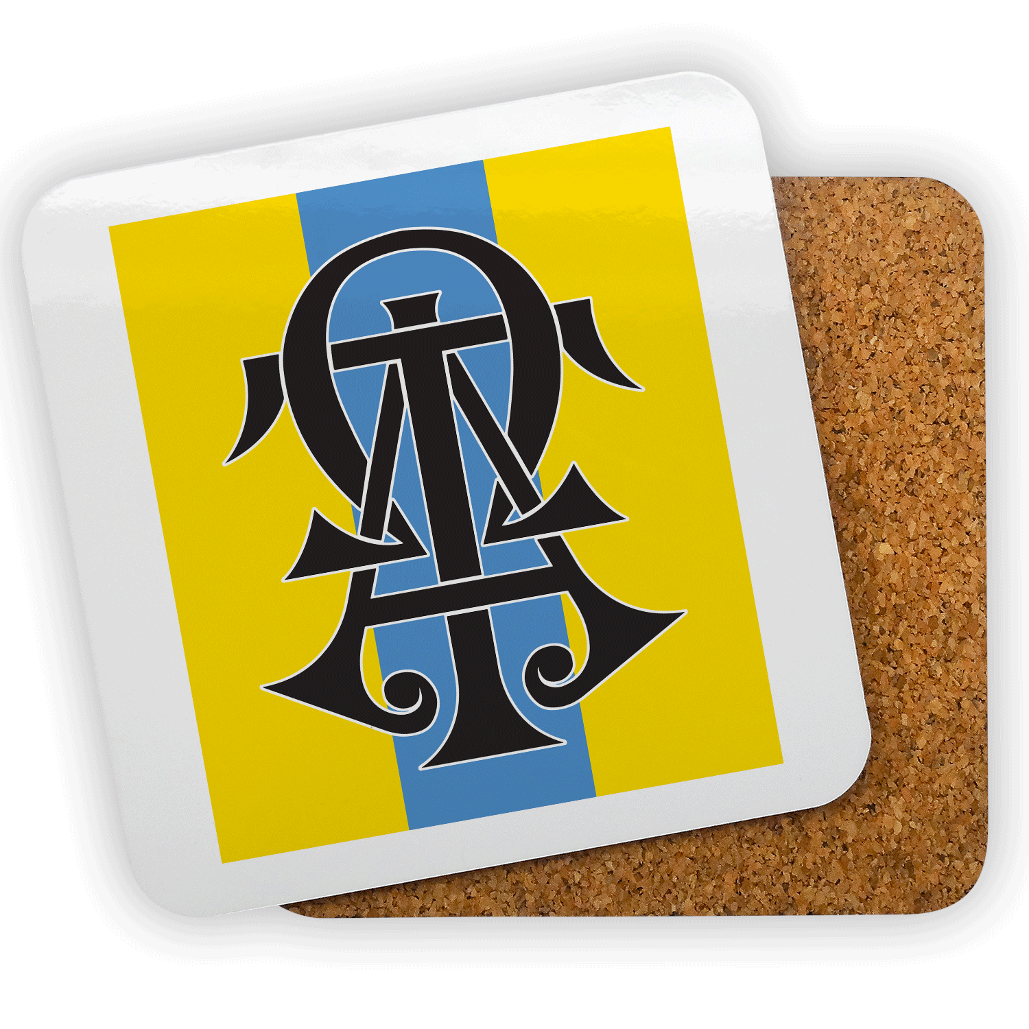 Specs: 3.75” square coaster with rounded corners, cork backing