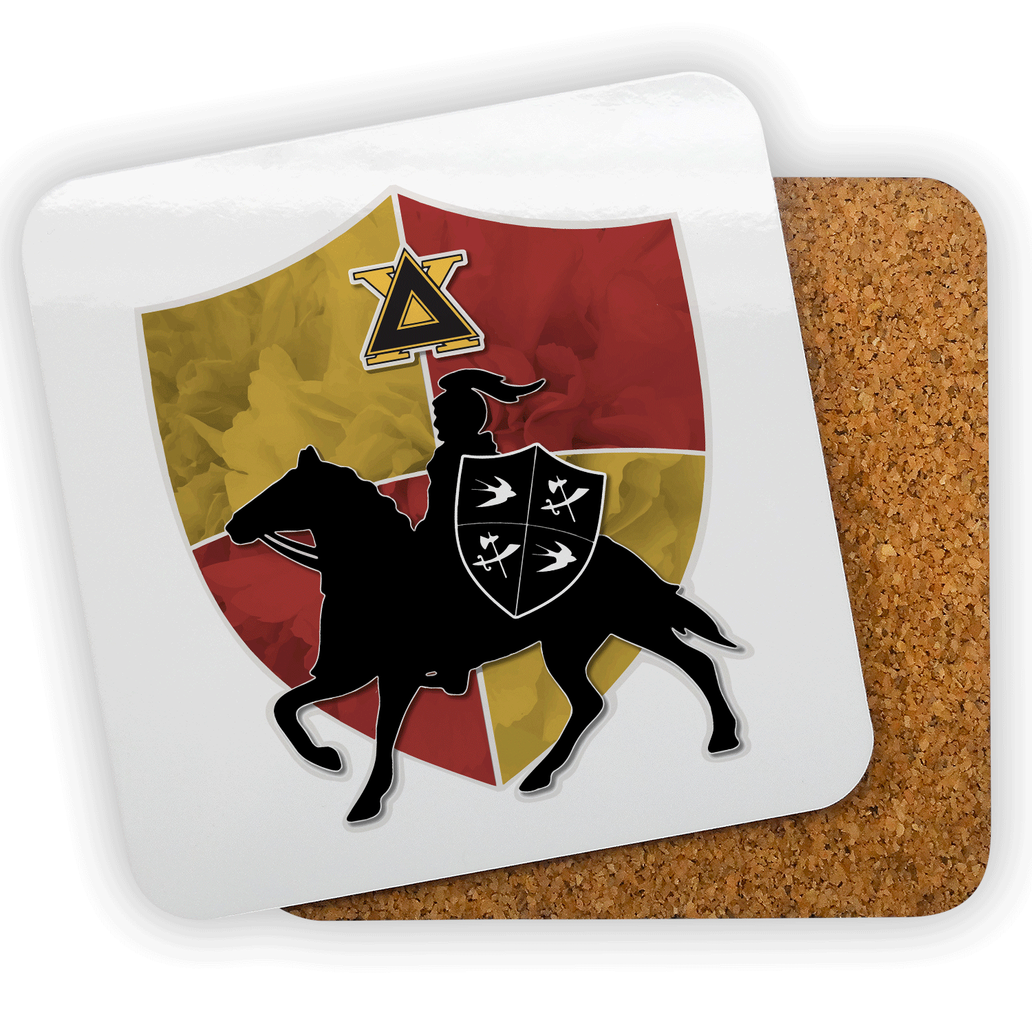 Specs: 3.75” square coaster with rounded corners, cork backing