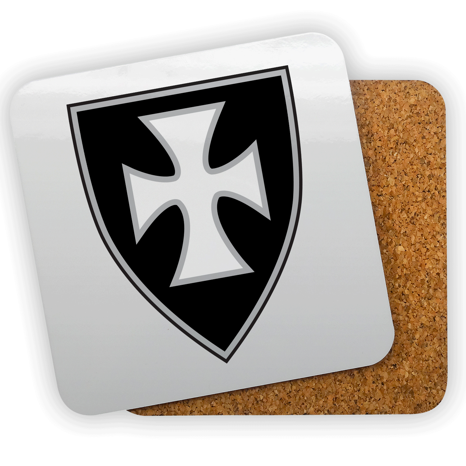 Specs: 3.75” square coaster with rounded corners, cork backing