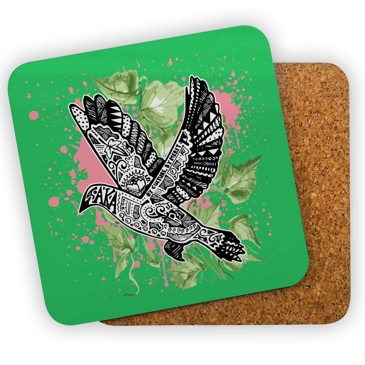 Specs: 3.75” square coaster with rounded corners, cork backing Features: Gloss background Quantity: Comes in packs of 4