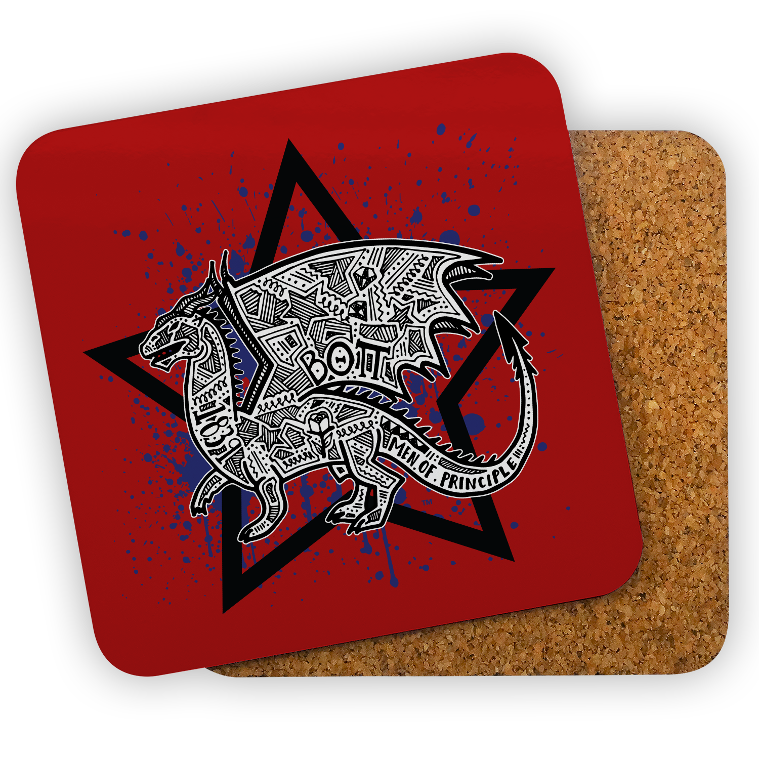 Specs: 3.75” square coaster with rounded corners, cork backing