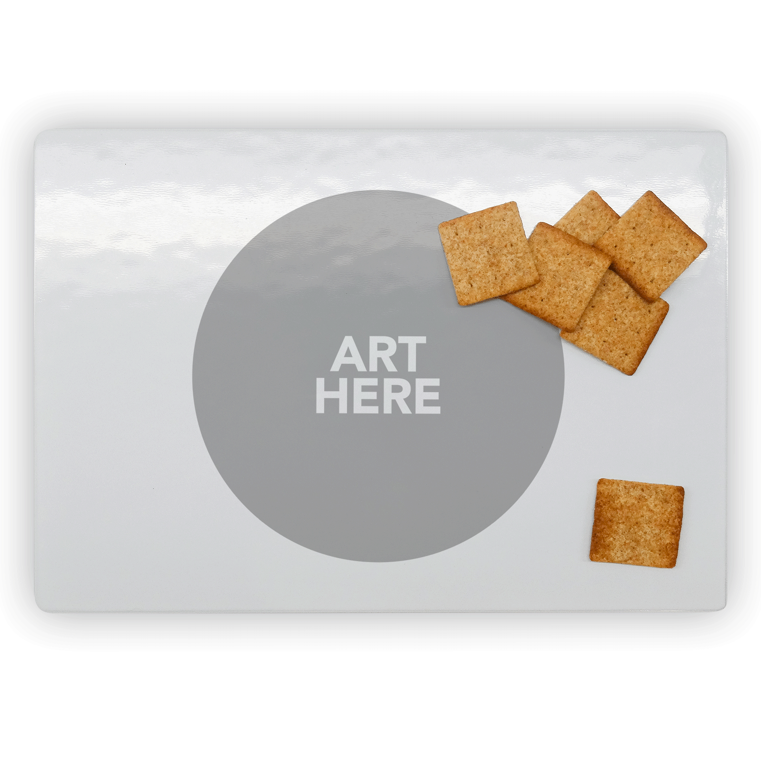 Specs: 11.8″ x 7.87” tempered glass Features: Small rubber feet on bottom that prevent sliding
