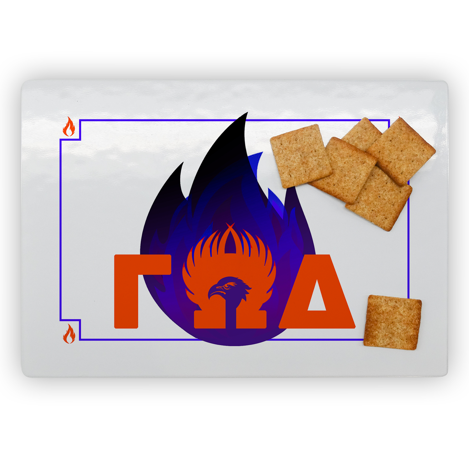 Features a hand crafted mascot with your orgs specific elements.