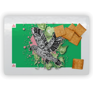 Specs: 11.8″ x 7.87” tempered glass Features: Small rubber feet on bottom that prevent sliding