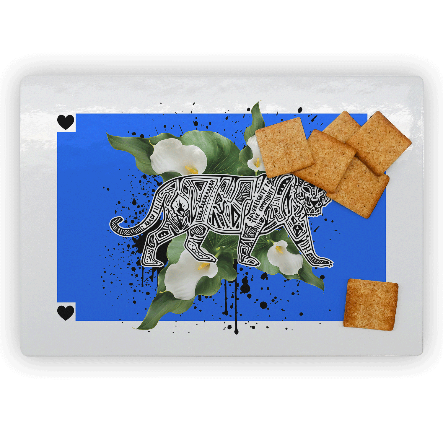 Specs: 11.8″ x 7.87” tempered glass Features: Small rubber feet on bottom that prevent sliding