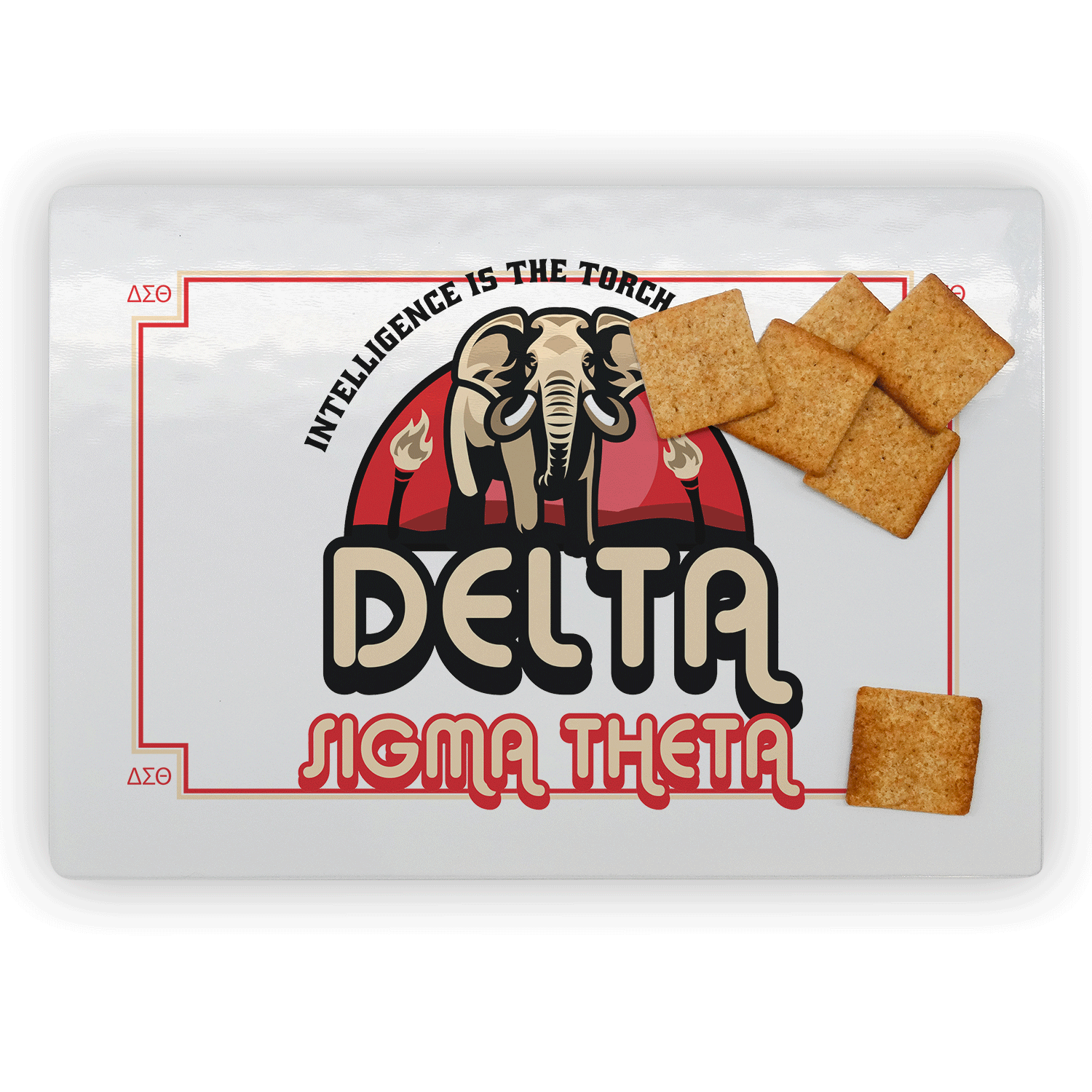 Specs: 11.8″ x 7.87” tempered glass Features: Small rubber feet on bottom that prevent sliding