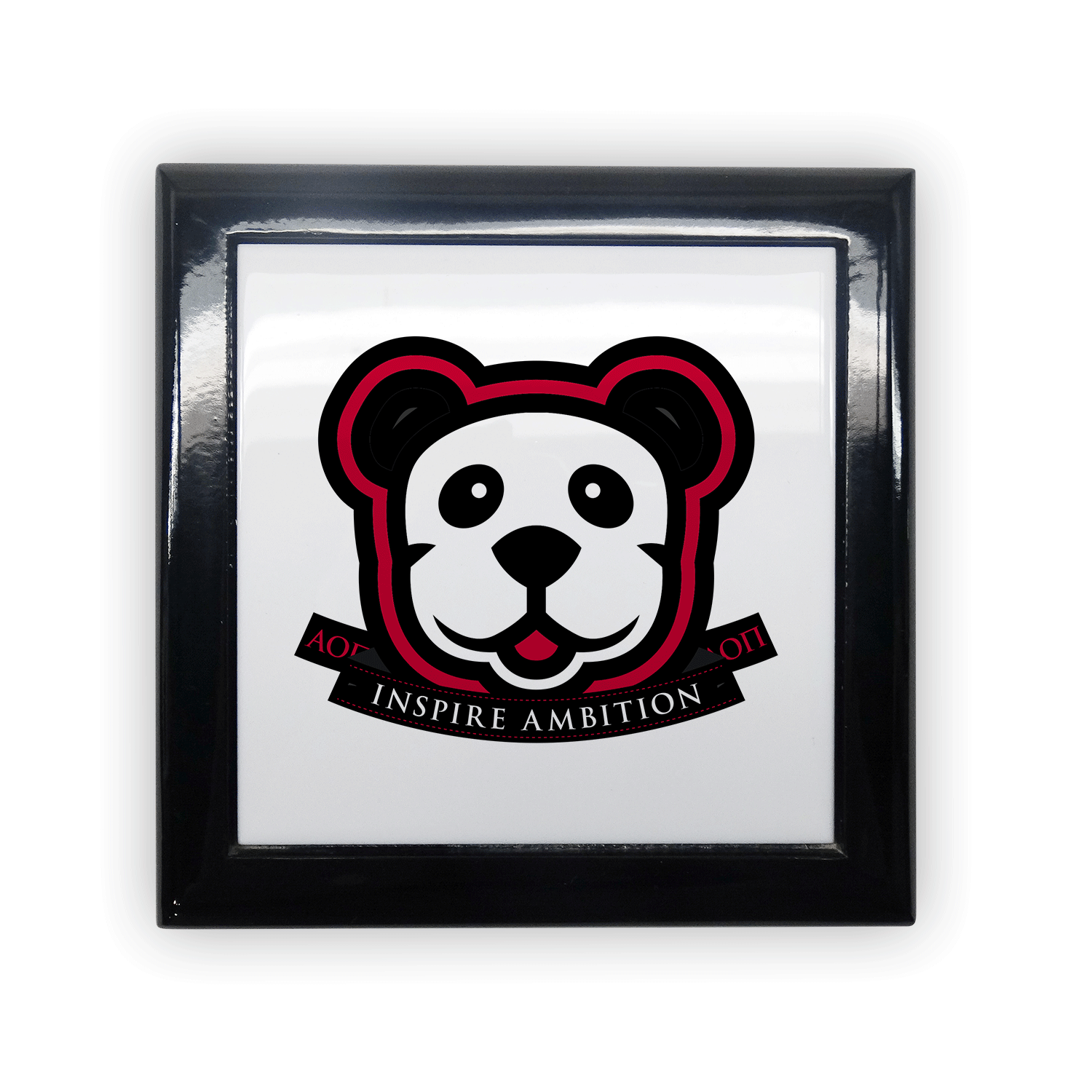 Featuring your specific mascot, motto, letters, and stunning colors.