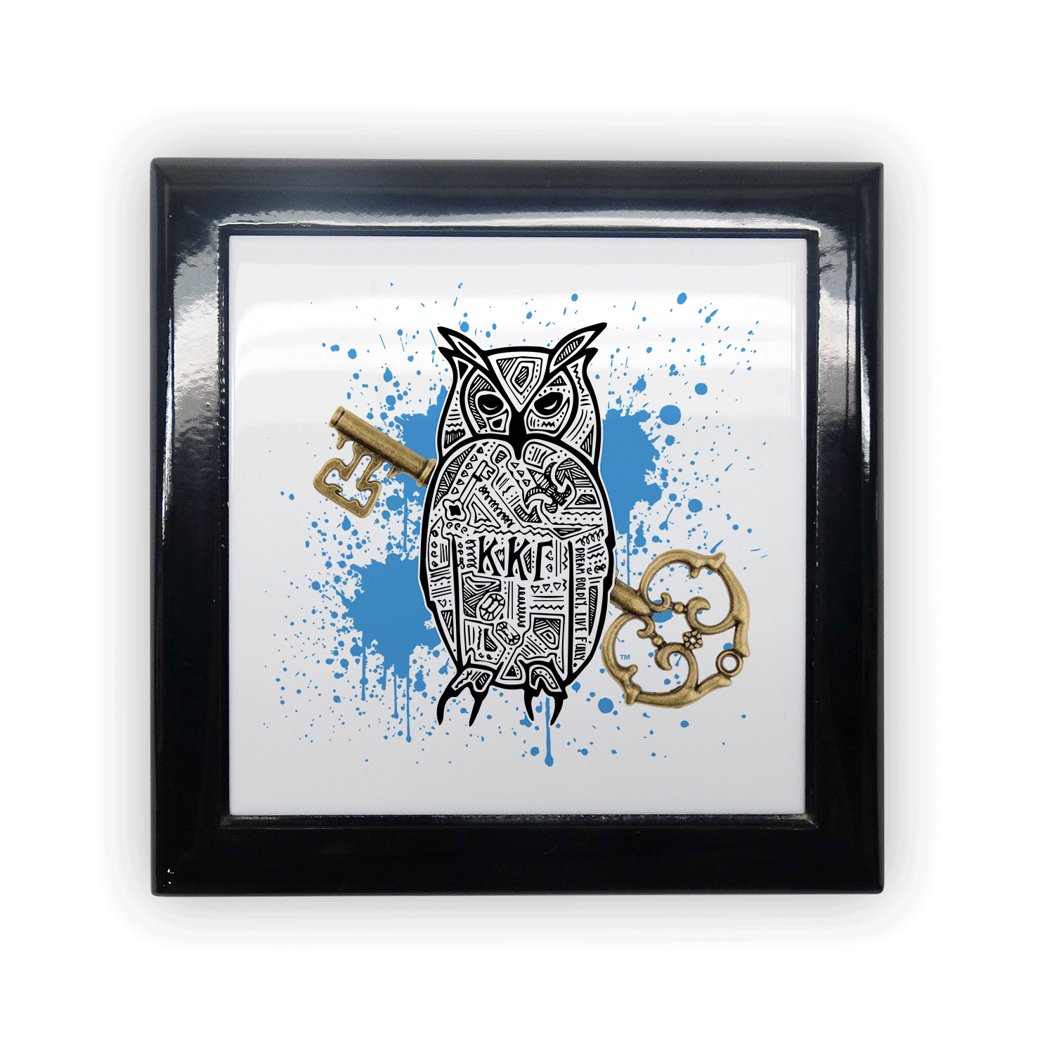 Specs: 5.5” square and 2.3” deep; black gloss wood with hinged lid