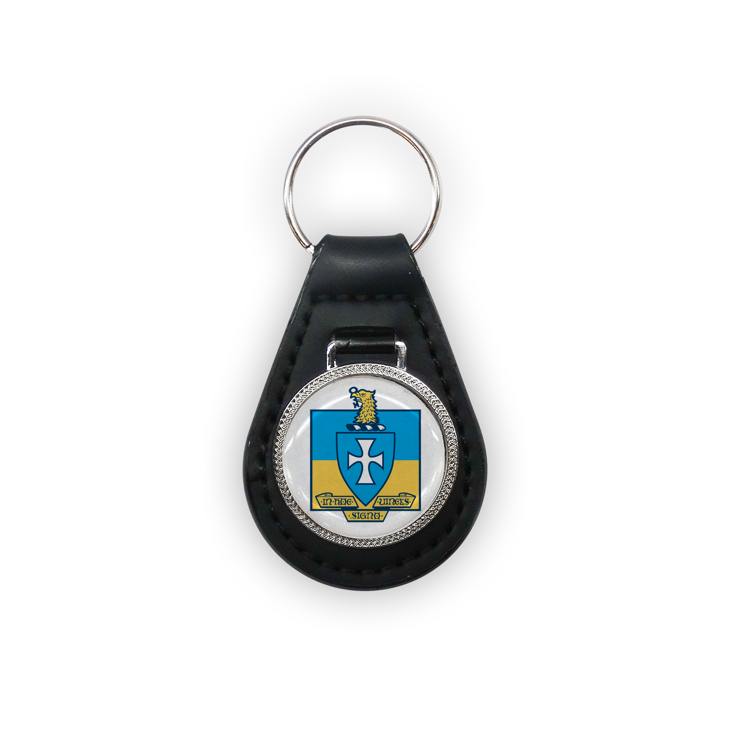 Specs: Fob made of quality black faux leather with 1” diameter image Features: Graphic protected by dome cover