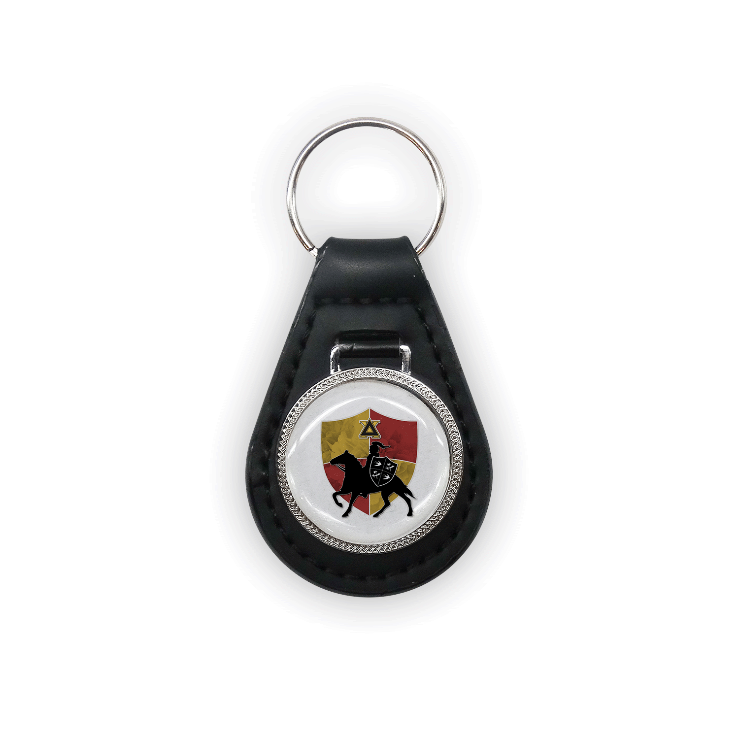 Specs: Fob made of quality black faux leather with 1” diameter image Features: Graphic protected by dome cover