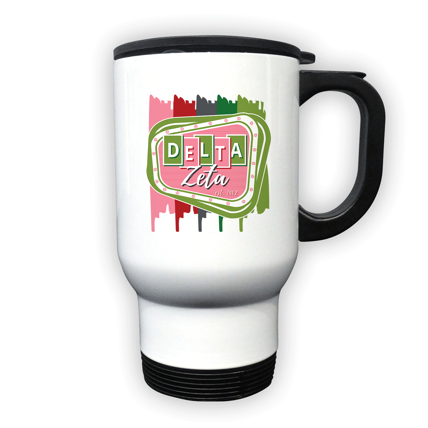 Delta Zeta - Retro Travel Mug – White