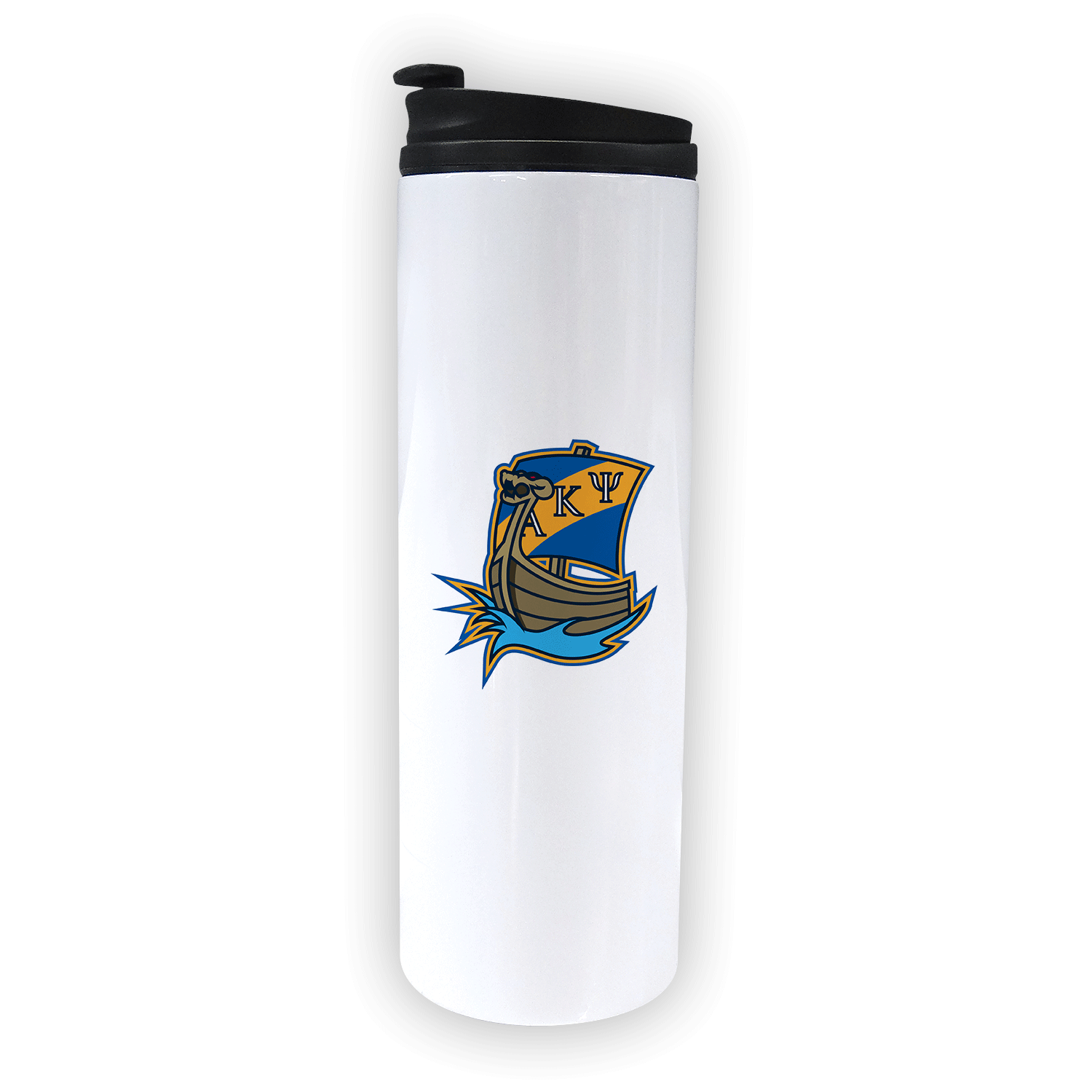 Specs: Graphic is printed on a white 16 oz. stainless steel tumbler that has removable resilient plastic lid. Features: Your sorority tumbler fits into any standard vehicle drink holder.
