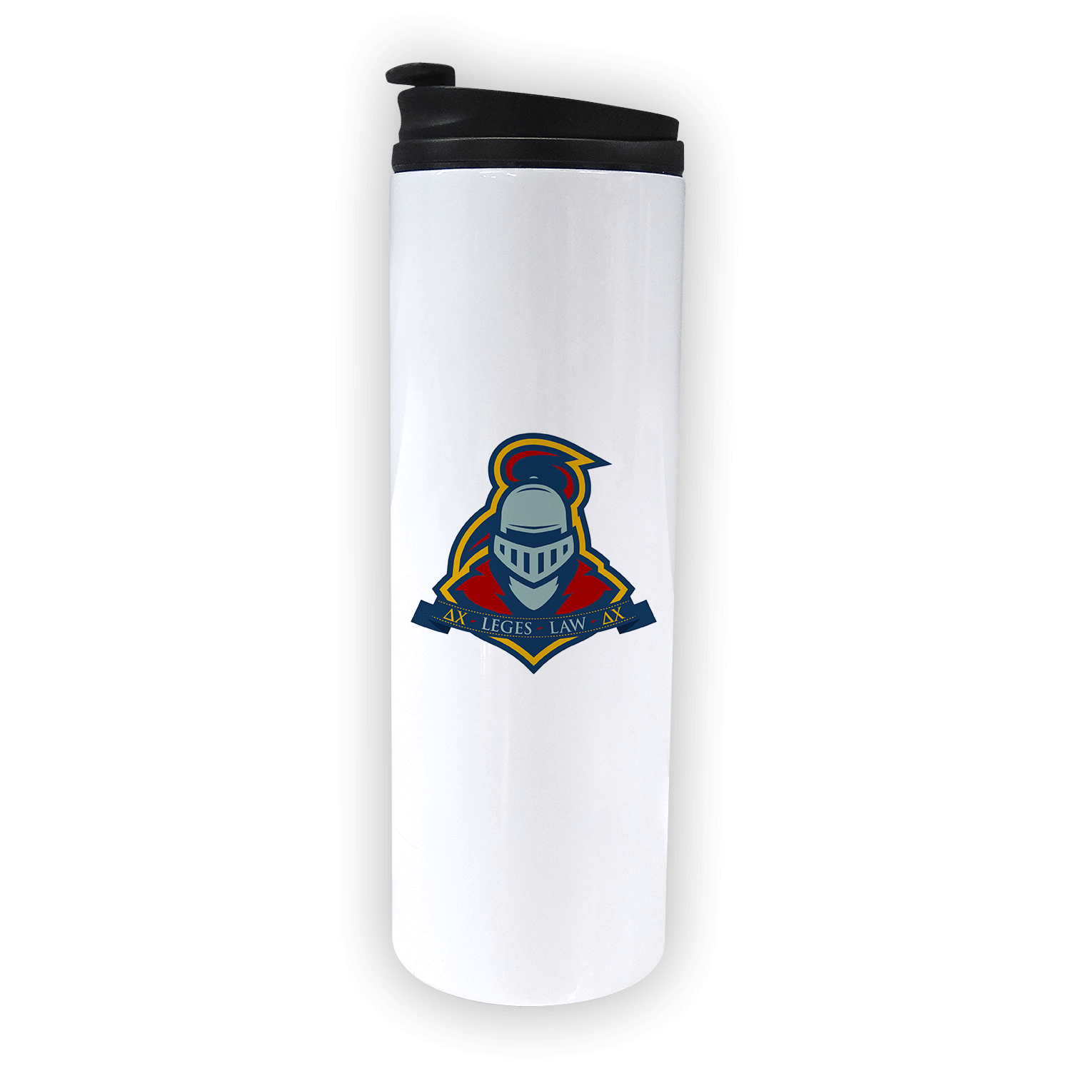 Specs: Graphic is printed on a white 16 oz. stainless steel tumbler that has removable resilient plastic lid.