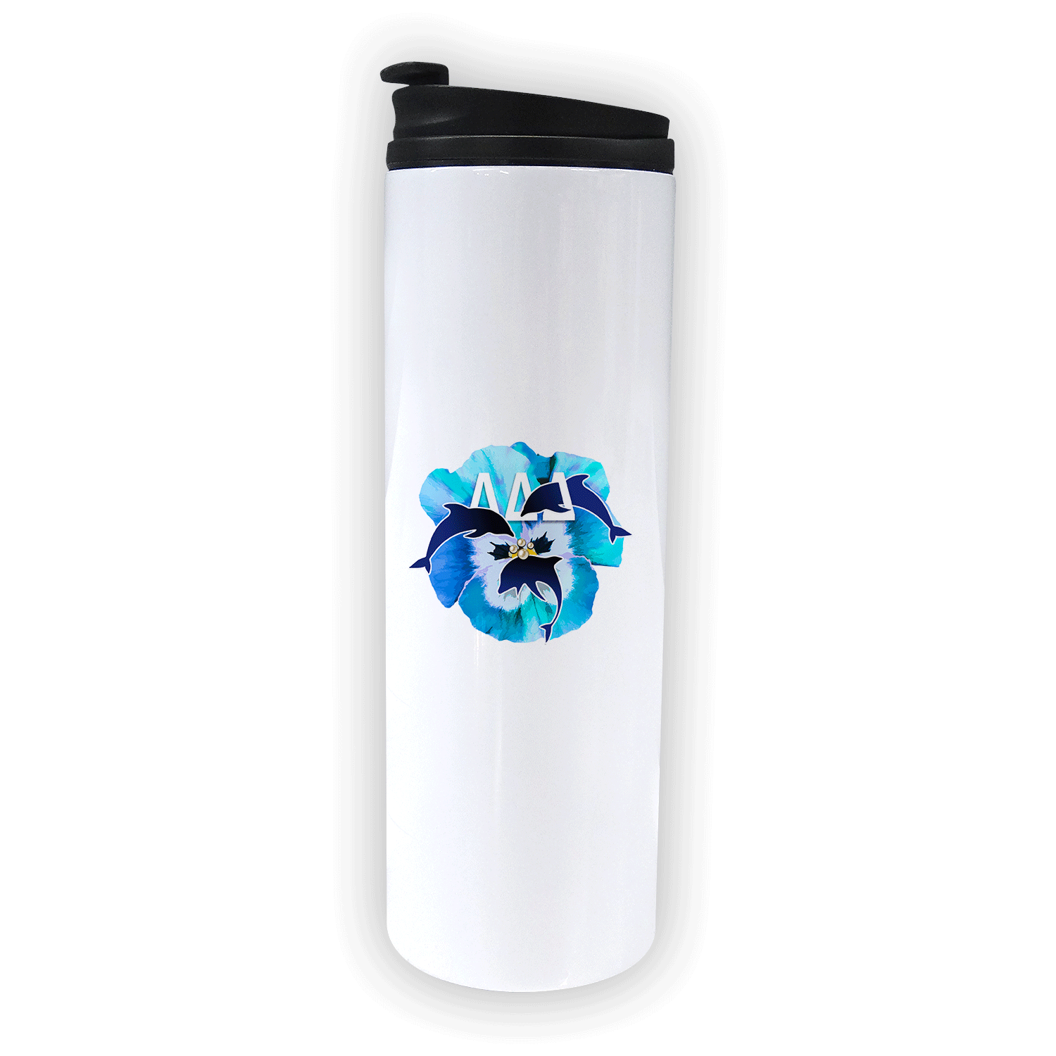 Specs: Graphic is printed on a white 16 oz. stainless steel tumbler that has removable resilient plastic lid.