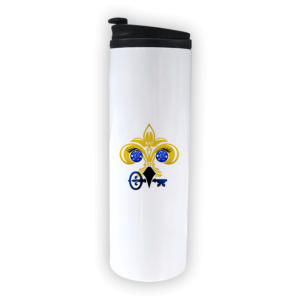 Specs: Graphic is printed on a white 16 oz. stainless steel tumbler that has removable resilient plastic lid.