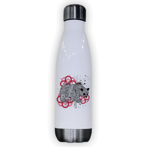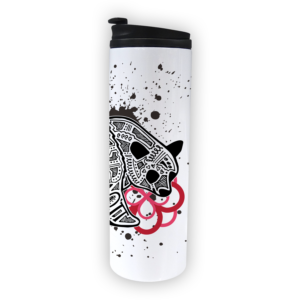 Specs: Graphic is printed on a white 16 oz. stainless steel tumbler that has removable resilient plastic lid.