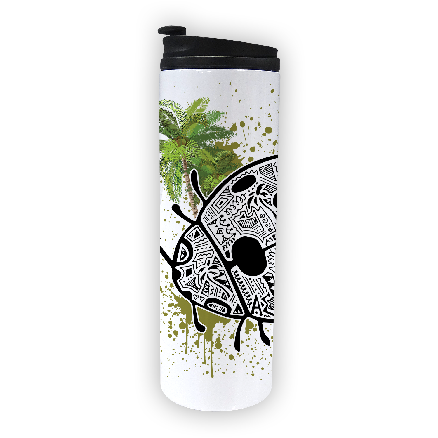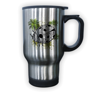 Specs: Graphic is printed on a white 16 oz. stainless steel tumbler that has removable resilient plastic lid.