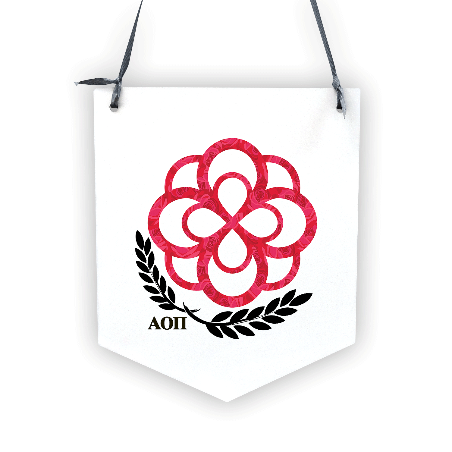 Features: Grey ribbon for hanging